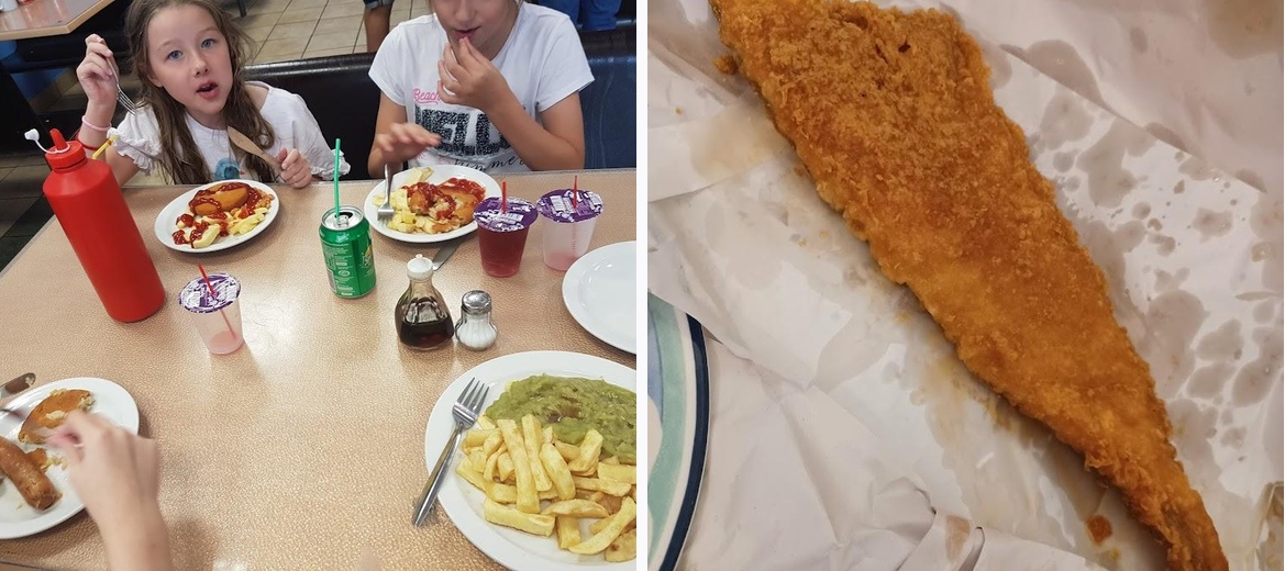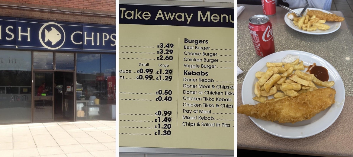 I normally come to Tesco for shopping, and was thinking i should give this place a try. The food was really nice the service was really good, we paid £18.00 for 2 mini cods, a small portion of chips and 2 drinks which i think is a fair price. The fish was really nice and so were the chips service was really good, the only issue was the tables were filthy, and nobody was cleaning them, floors were dirty had chips and bits of fish on it, we had to ask for our table to be cleaned, other than that would recommend.